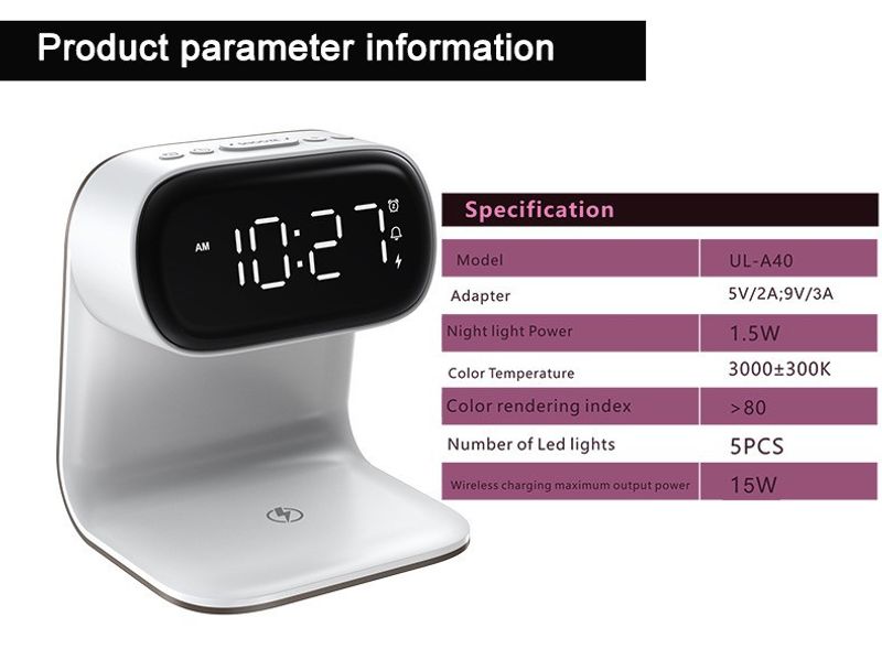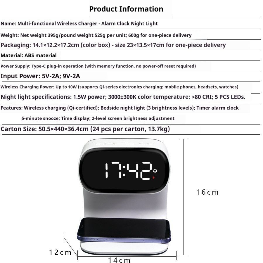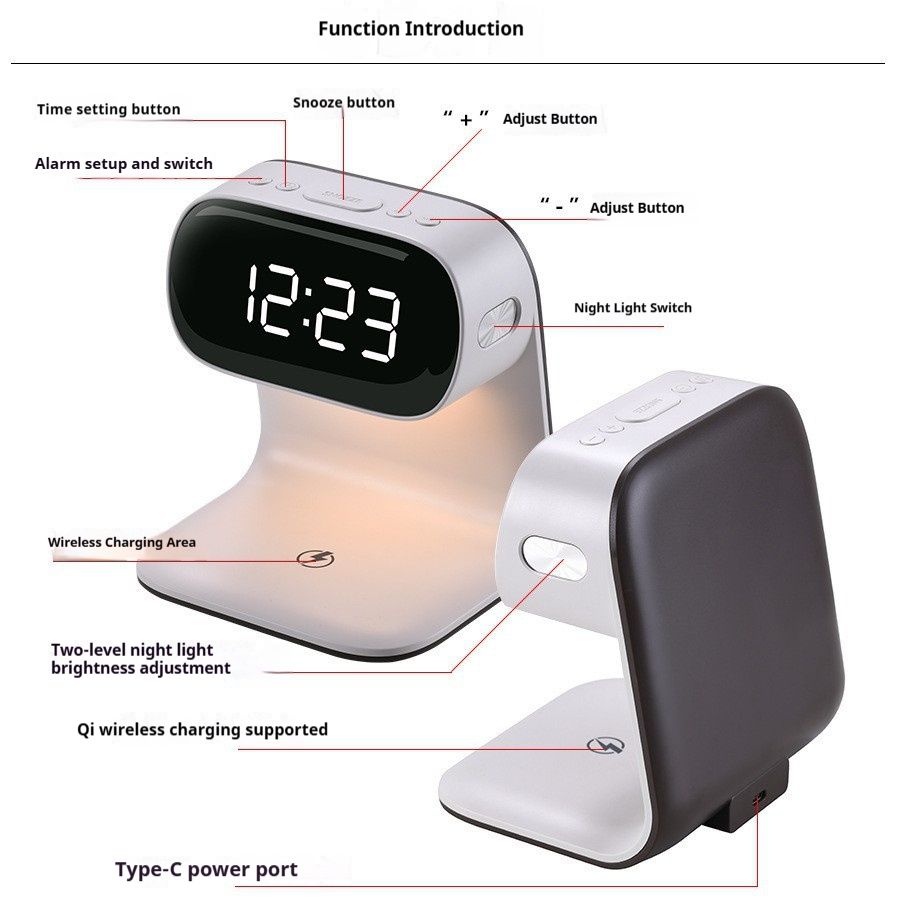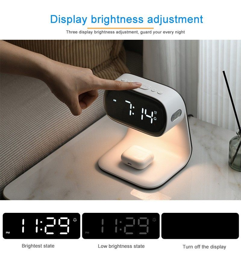 3-in-1 Digital Clock, Night Light, Alarm Clock, and Wireless Charger for Apple Watch, Phone, and Earbuds