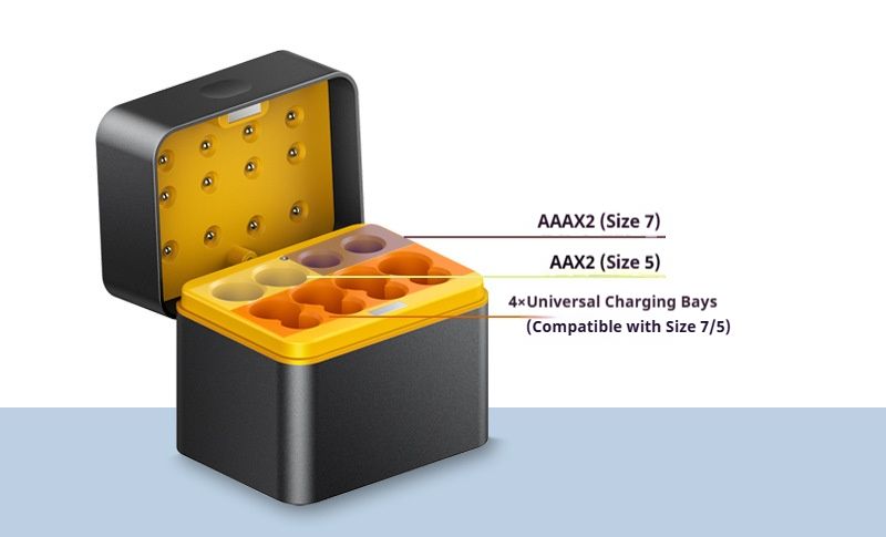 ⚡Rechargeable Battery Case, 8 Charging Compartments, WIth 4 AA Batteries + 4 AAA Batteries🔥