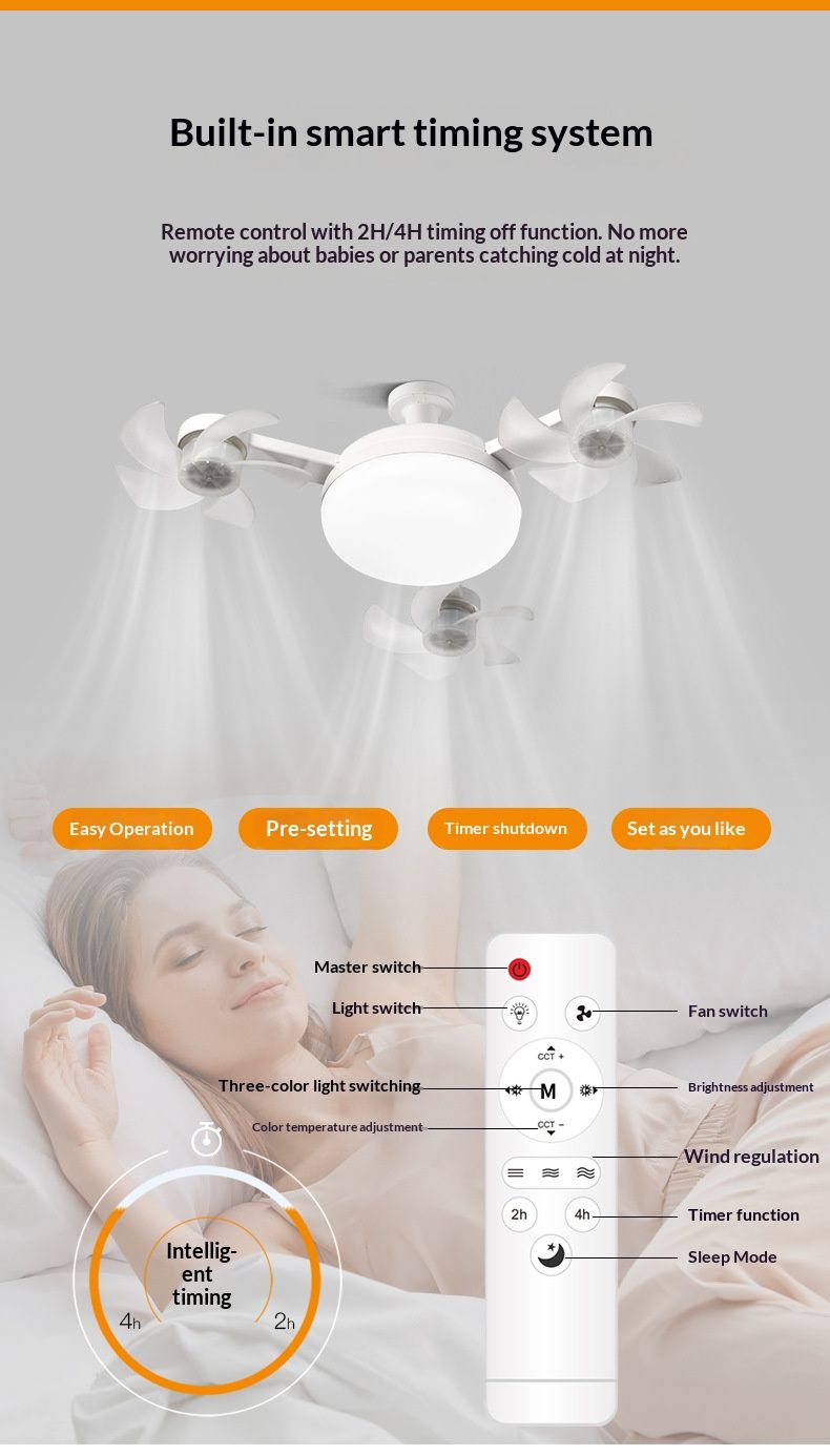 💡 🌬️LED Four-Blade Fan Light Three Speed Settings Three Color Light Options🔥