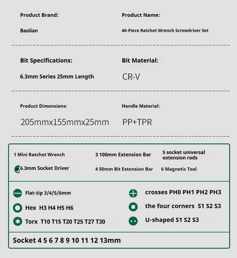 🔥HOT-SALE Ratchet, wrench, screwdriver 40 pieces set🔥