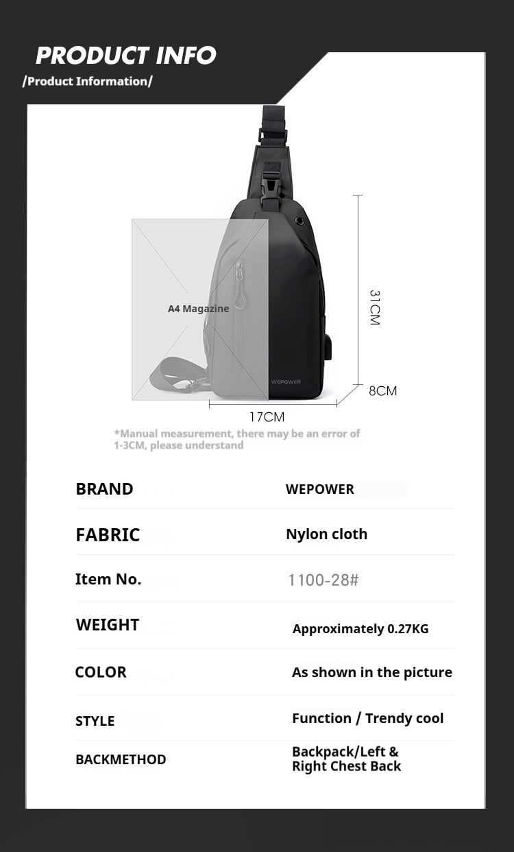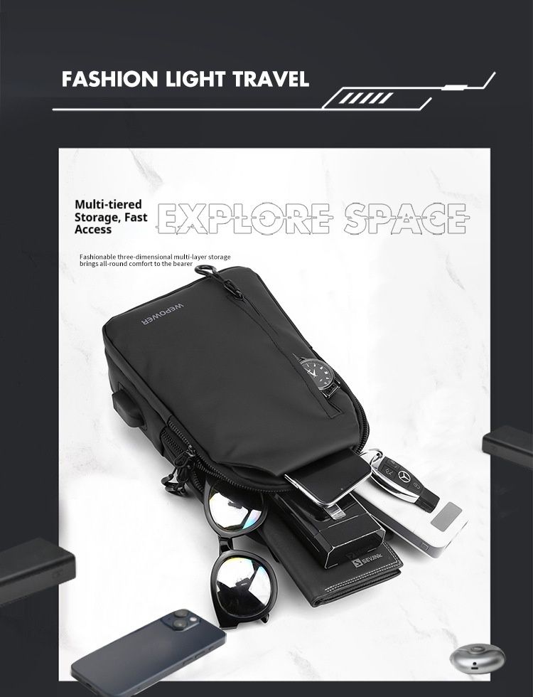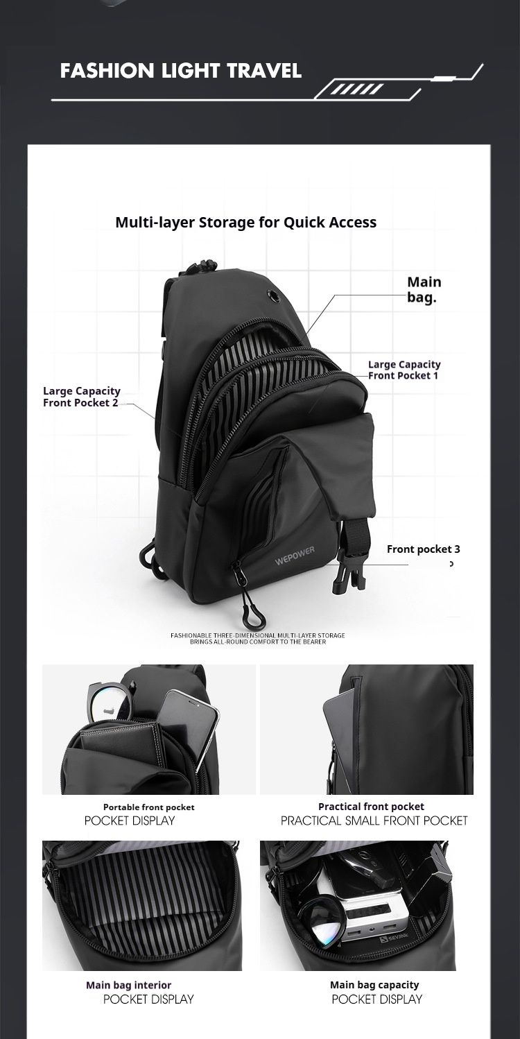 New Men's Crossbody Chest Bag - Large Capacity Waterproof Backpack